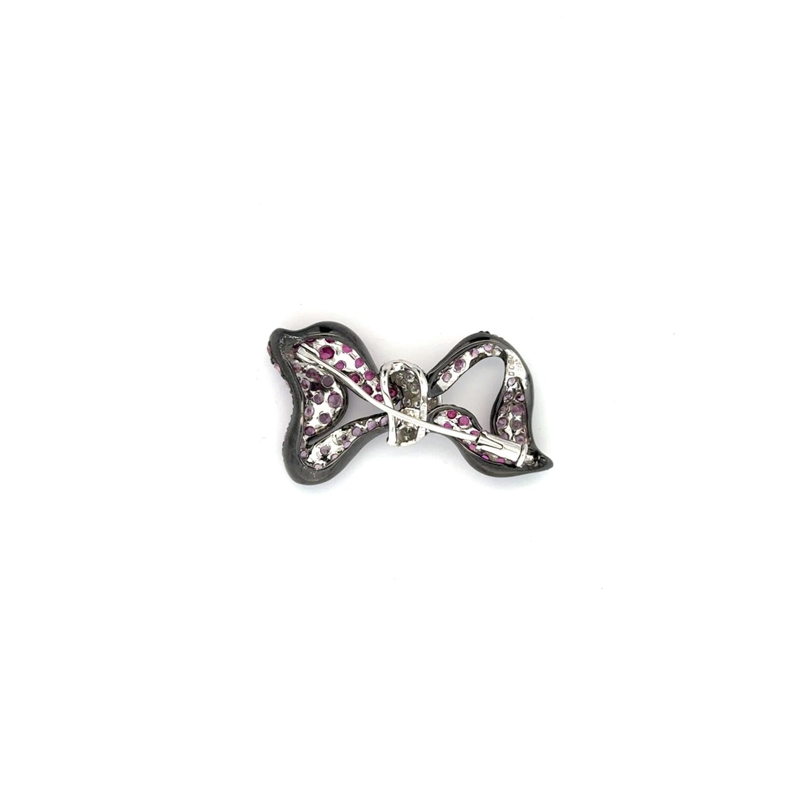 18K Black Gold Bow Brooch Set with Pink Sapphire & Diamond