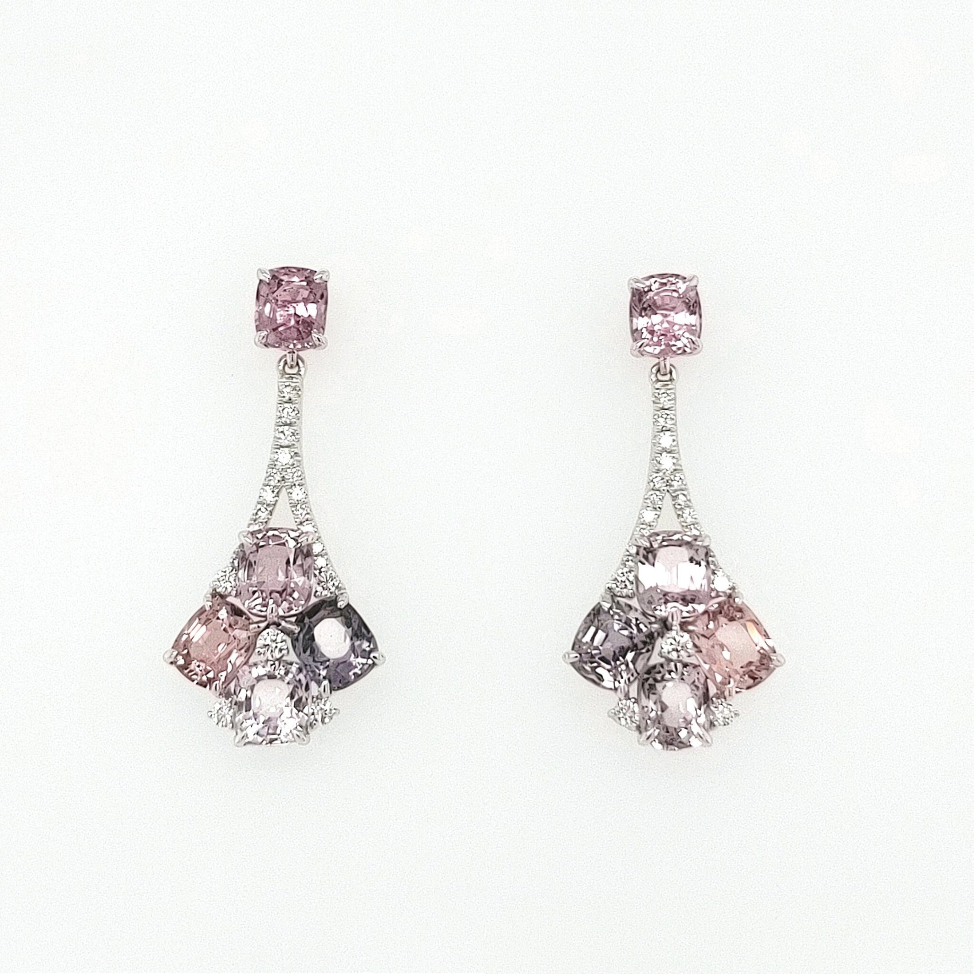 18K White Gold Vintage Design Earrings Set with Emerald Shape Spinels, Diamonds