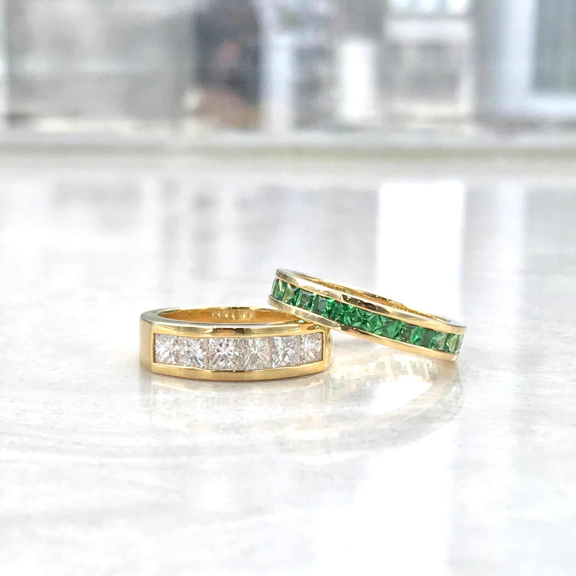18K Yellow Gold Infinity Ring Set with Tsavorite